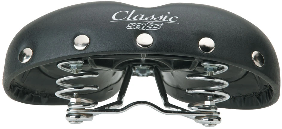 Combine retro styling with amazing comfort and you get Serfas’ Cruiser Classic saddle. A central groove distributes your weight properly and plush padding smoothes the road. Plus, this sweet seat features a vintage look: 70’s-style rear chrome buttons and classic chrome rear springs.