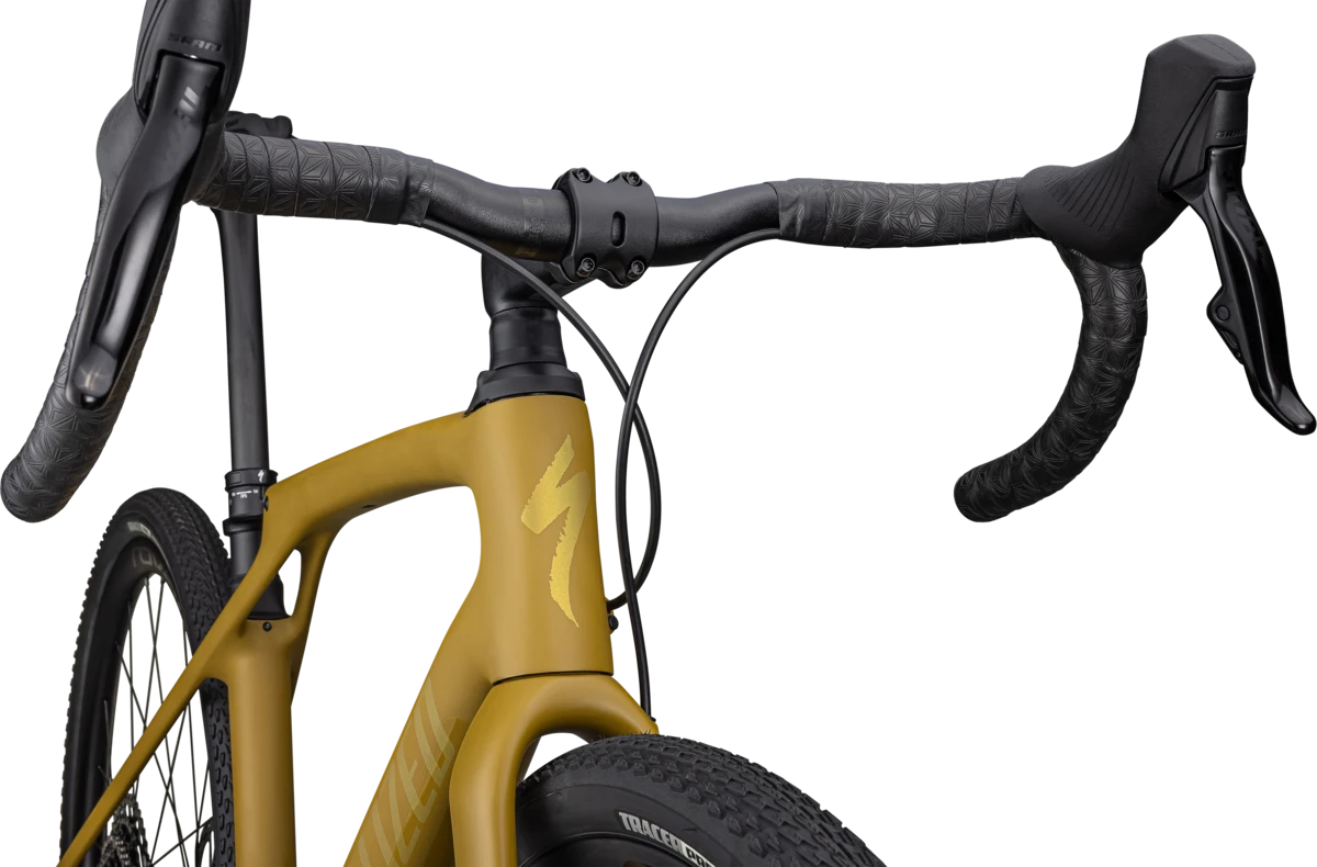 With Future Shock suspension front and rear, the new Diverge STR delivers compliance without compromise. By suspending the rider-instead of the bike-Future Shock technology increases control and efficiency while decreasing fatigue, so you’ll be riding farther and faster over chunkier terrain than you believed possible. And the Diverge STR does this without the weight, sluggish pedal response, and inefficiency of other suspension systems. The Diverge STR Expert starts with our FACT 11r carbon frameset with front and rear Future Shock suspension. It’s built with SRAM’s Rival eTap AXS Eagle groupset for fast, efficient shifting with a 10-50 cassette to ensure you have the gearing to tackle any ride. The bike rolls on the Roval Terra C wheels with 42mm Tracer Pro tires. Adventure Gear alloy handlebars, an S-Works carbon seatpost, and Power Expert saddle complete the package making the Diverge STR the most capable Diverge ever.