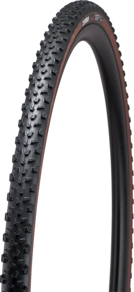 The new tubeless-ready S-Works Terra is made for CX racing in muddy conditions and spec’d with a light and supple 120 TPI casing with grippy T7 GRIPTON® compound. This rubber grips in all course conditions and will give you confidence on every race lap. The new GRID RACE sidewall protection is a lightweight cross-woven polyamide mesh, which is tear- and puncture-resistant but still very elastic for a supple ride. GRID RACE provides the best combination of protection, low weight, and speed, all while maintaining a responsive feel. A strong bead holds to the rim at low tire pressures, and the tire cross-section is designed to meet the UCI rule of 33 mm on a wide modern rim shape.